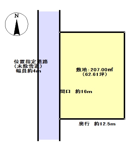 形状 間口 16m × 奥行 12.5m 道路 4m 位置指定道路