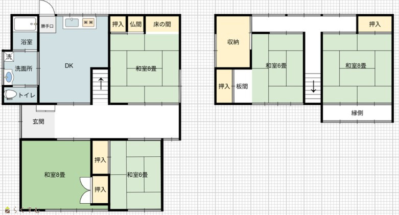 | 間取り | 5DK (和室:6畳、6畳、8畳、8畳、8畳) | ||