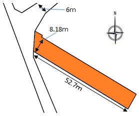 | 形状 | 間口 8.1m × 奥行 52.7m | 道路 | 北西6m |