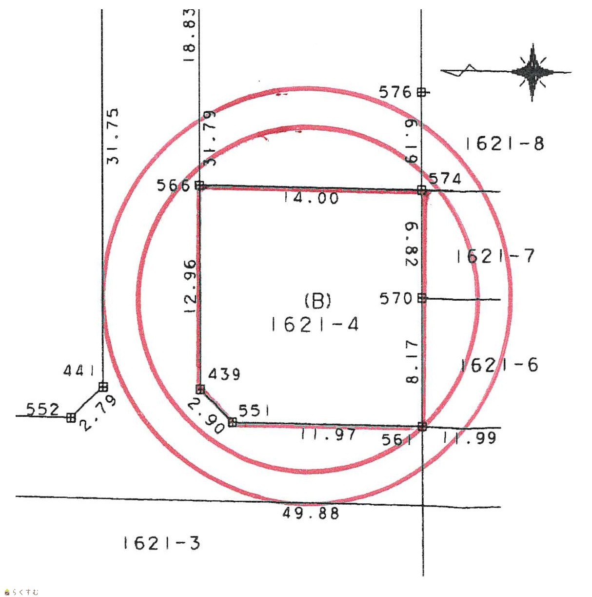 | 形状 | 間口 12.96m × 奥行 14.00m | 道路 | 北側(幅員:6m)、西側(幅員5m) |