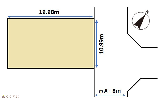 | 形状 | 間口 10.99m × 奥行 19.98m | 道路 | 東:市道(8m) |
