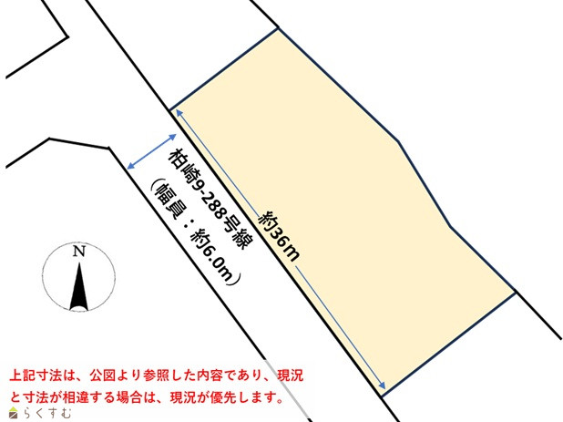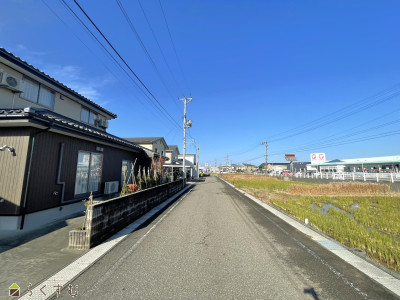 | 備考 | ・本物件は地目「田」につき、農地法の許可申請が必要になります。 ・上水道・下水道は全面道路より引込みが必要です。(都市ガスは前面道路に整備されておりません。) |