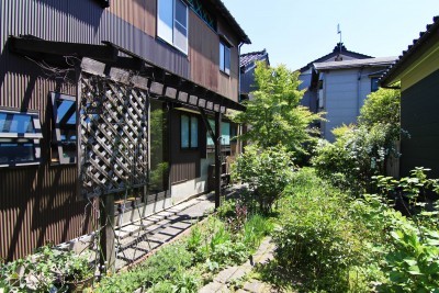 | 与板のまちの中心地に建つ店舗併用住宅です。住居部分は通り土間があり、古民家の趣が感じられます。 | |||