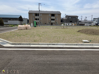 | 設備 | 角地、整形地、前道6m以上、南側道路面す、更地、学校近く、所有権、都市ガス(前面道路)、上水道(前面道路)、下水道(前面道路)、電気、都市ガス(宅地内)、上水道(宅地内)、下水道(宅地内)、前面道路融雪設備あり、住宅向け | ||