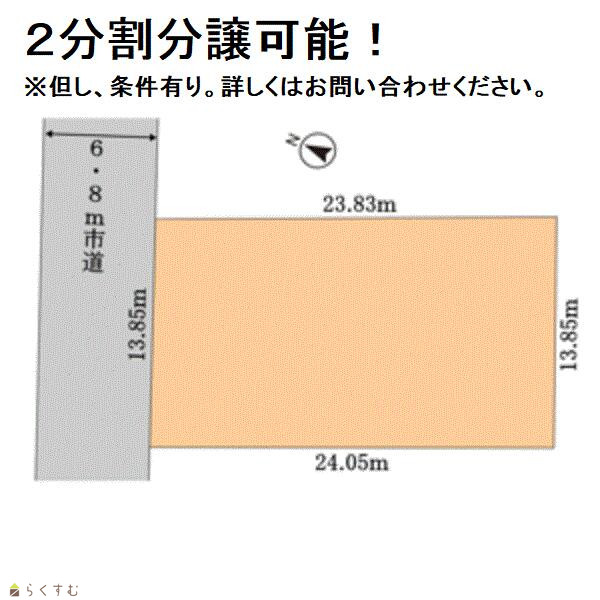 | 形状 | 間口 13.85m × 奥行 24.05m | 道路 | 市道 |