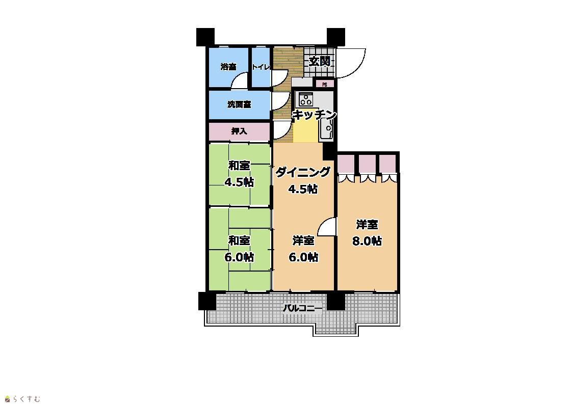 3LDK (和室:4.5畳、6畳) (洋室:8) 12.5 |