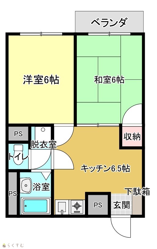 | 間取り | 2DK (和室:6畳、6畳) | ||
