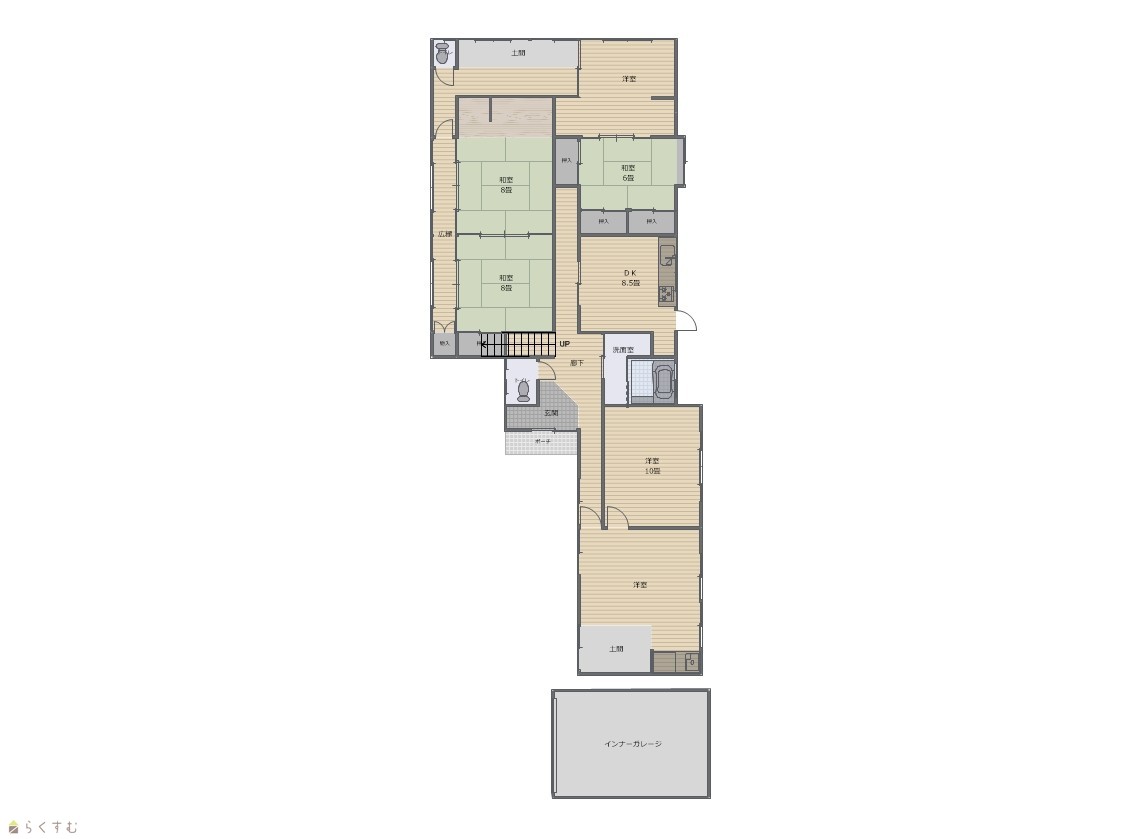 8DK (和室:8畳、8畳、6畳、8畳、6畳) (洋室:10、12、8.5) DK8.5 車庫あり |