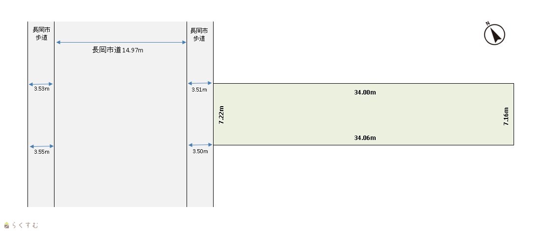 | 形状 | 間口 7.2m × 奥行 34m | 道路 | 北西側約22m公道 |