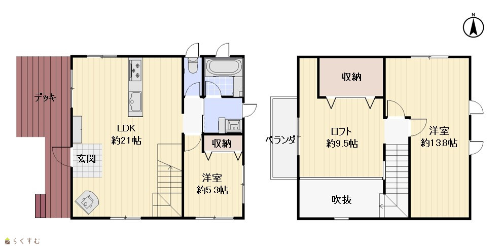 3LDK ウッドデッキ、ベランダあり |