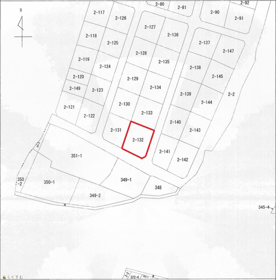 | 設備 | 角地、整形地、南側道路面す、更地、閑静な住宅街、建築条件なし、所有権、電気、上水道(宅地内)、下水道(宅地内)、住宅向け、田舎暮らし | ||