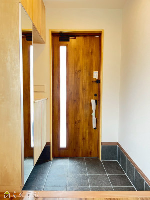 ![]() ※画像クリックで拡大表示 黒基調×茶系ドアで魅せる外観。外壁塗装&駐車場拡張済み。