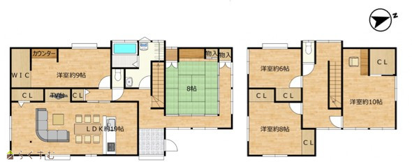 5LDK (和室:8畳) (洋室:10、9、8、6) LDK19 |