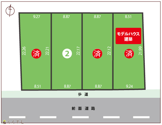 | 形状 | 間口 8.87m × 奥行 22.17m | 道路 | 南側 公道14m |