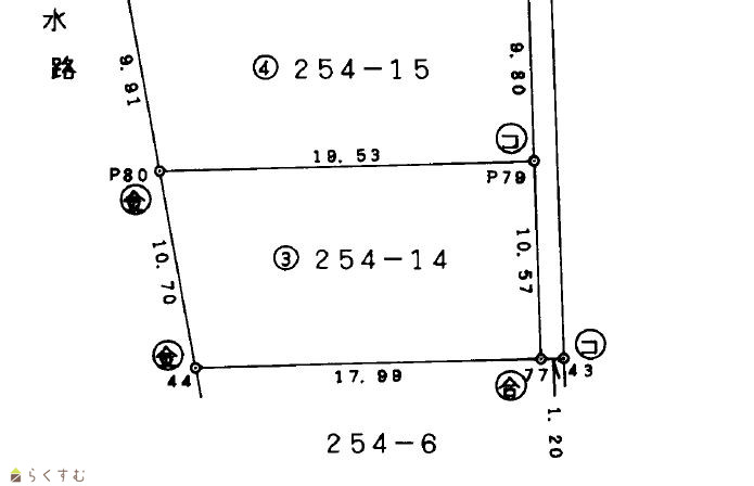| 形状 | 間口 10.5m × 奥行 17.9m | 道路 | 長岡市道 山通38号線(幅員4.5m) |