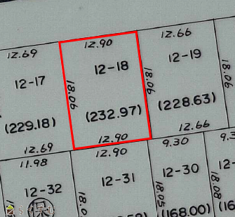 | 形状 | 間口 12.9m × 奥行 18m | 道路 | 市道 東幹線58号線(幅員17m) |