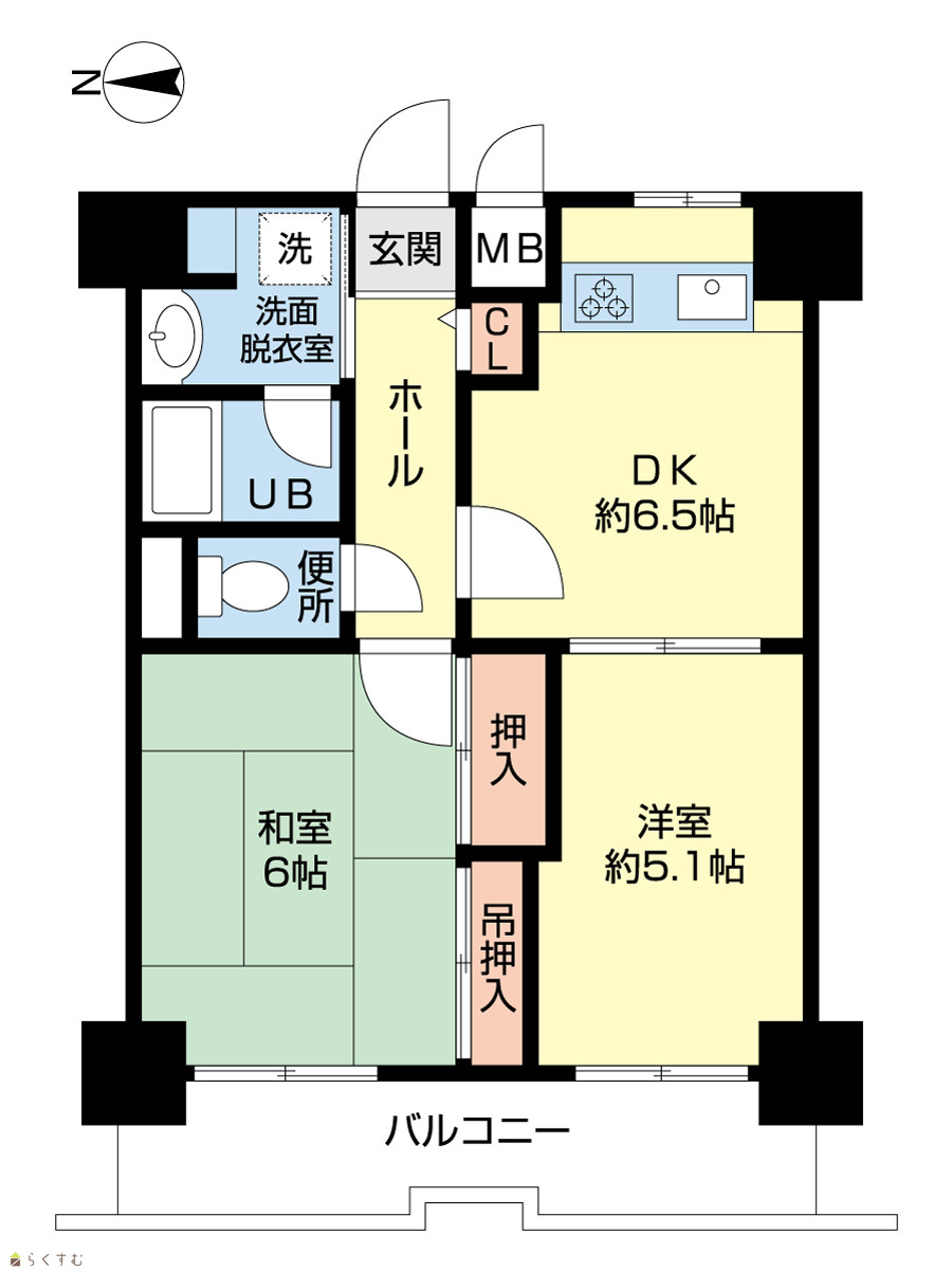 | 間取り | 2DK (和室:6畳) (洋室:6.5、5.1) | ||