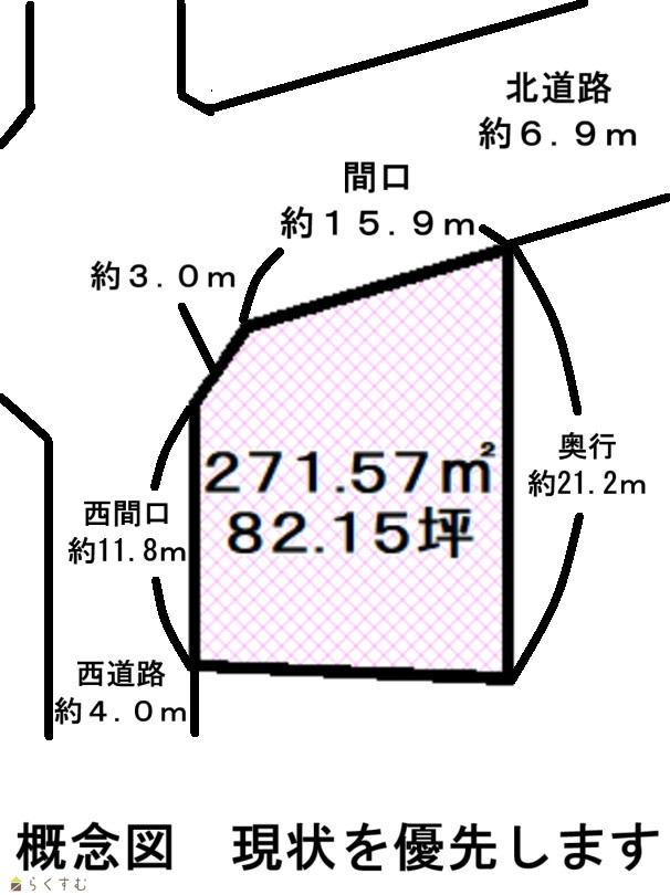 | 形状 | 間口 15.6m × 奥行 21.2m | 道路 | - |