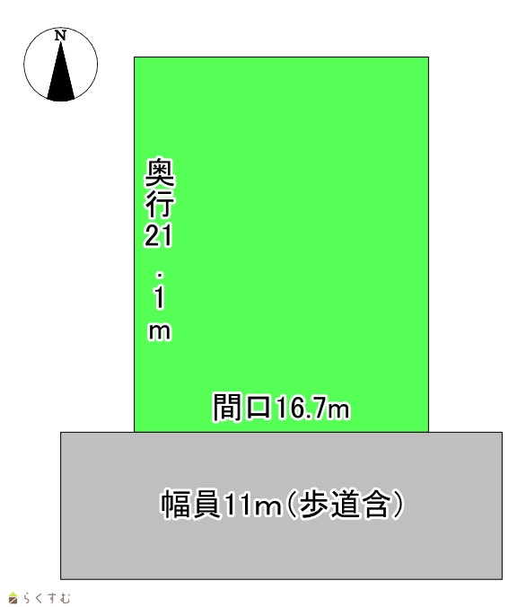 | 形状 | 間口 16.7m × 奥行 20.3m | 道路 | 市道 南側 幅員11m(歩道含む) 除雪道 |