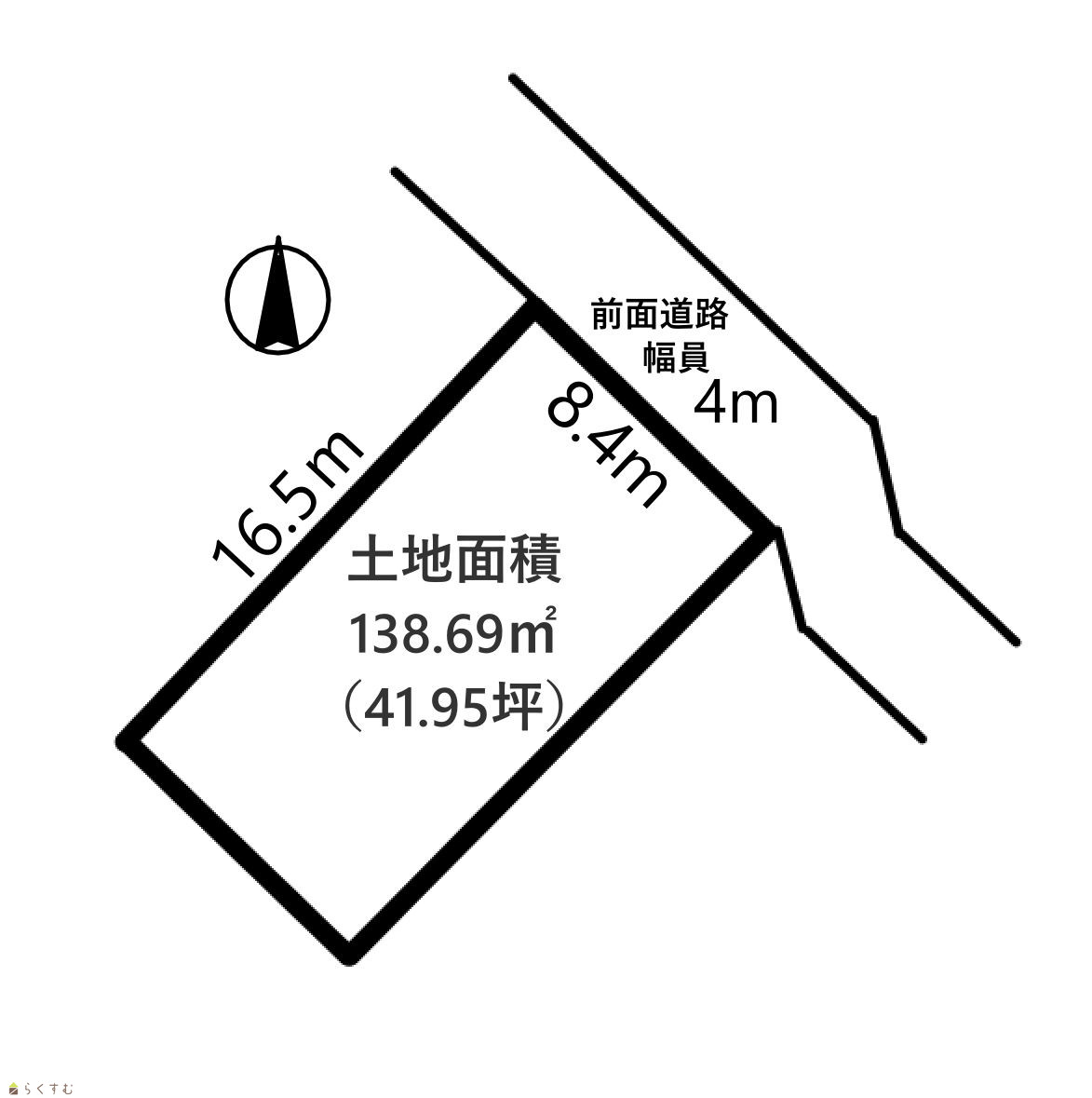 | 形状 | 間口 8.4m × 奥行 16.5m | 道路 | 位置指定道路 幅員4.0m |