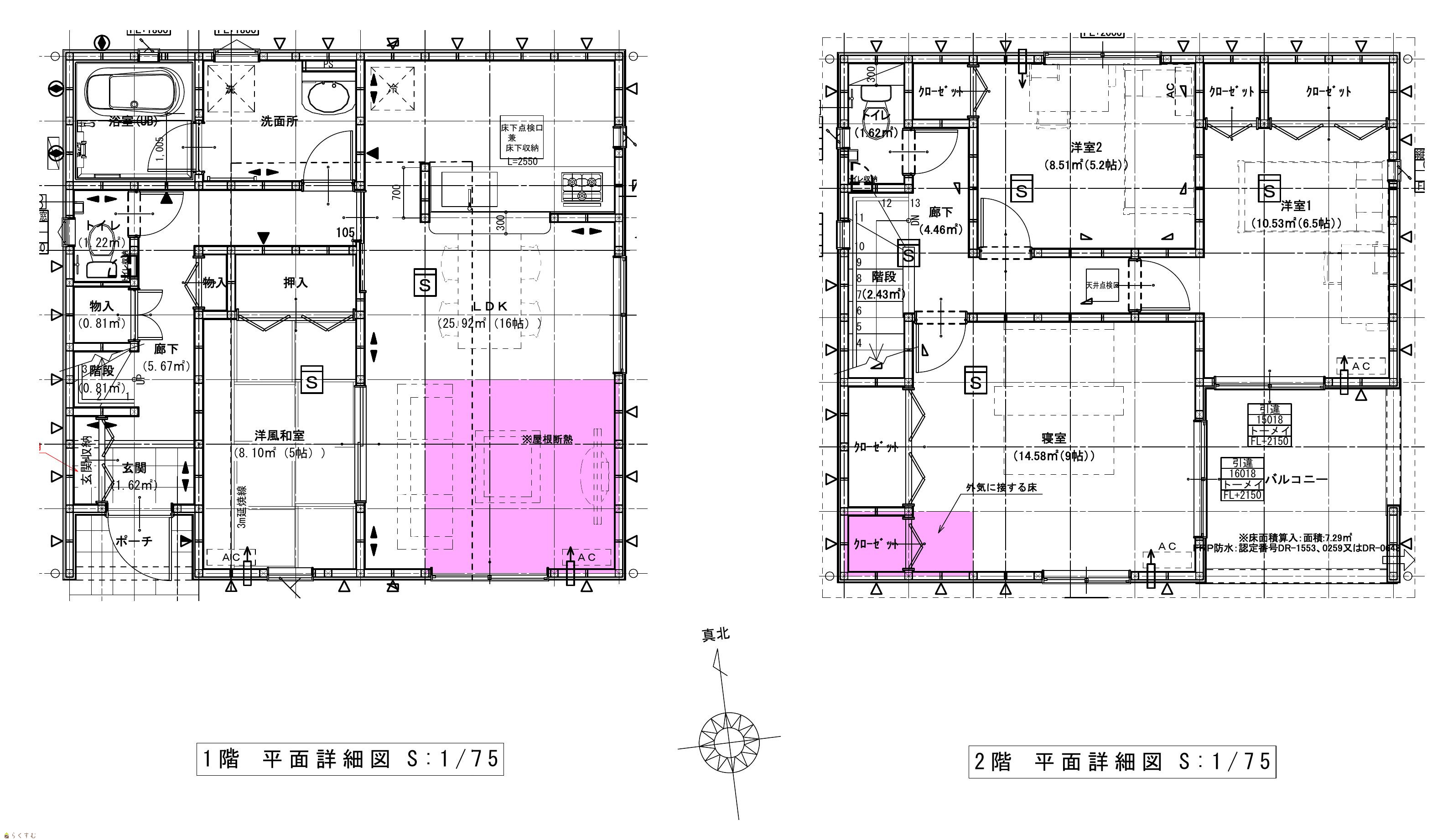 4LDK (和室:5畳) (洋室:9、6.5、5.2) LDK16 ルーフバルコニー約7.29平米有り |