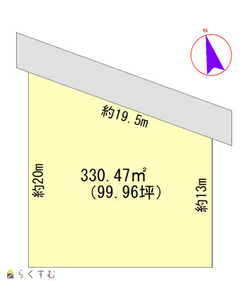| 形状 | 間口 19.5m | 道路 | 北側 3.45m 建築基準法外道路(43号2項2号) |