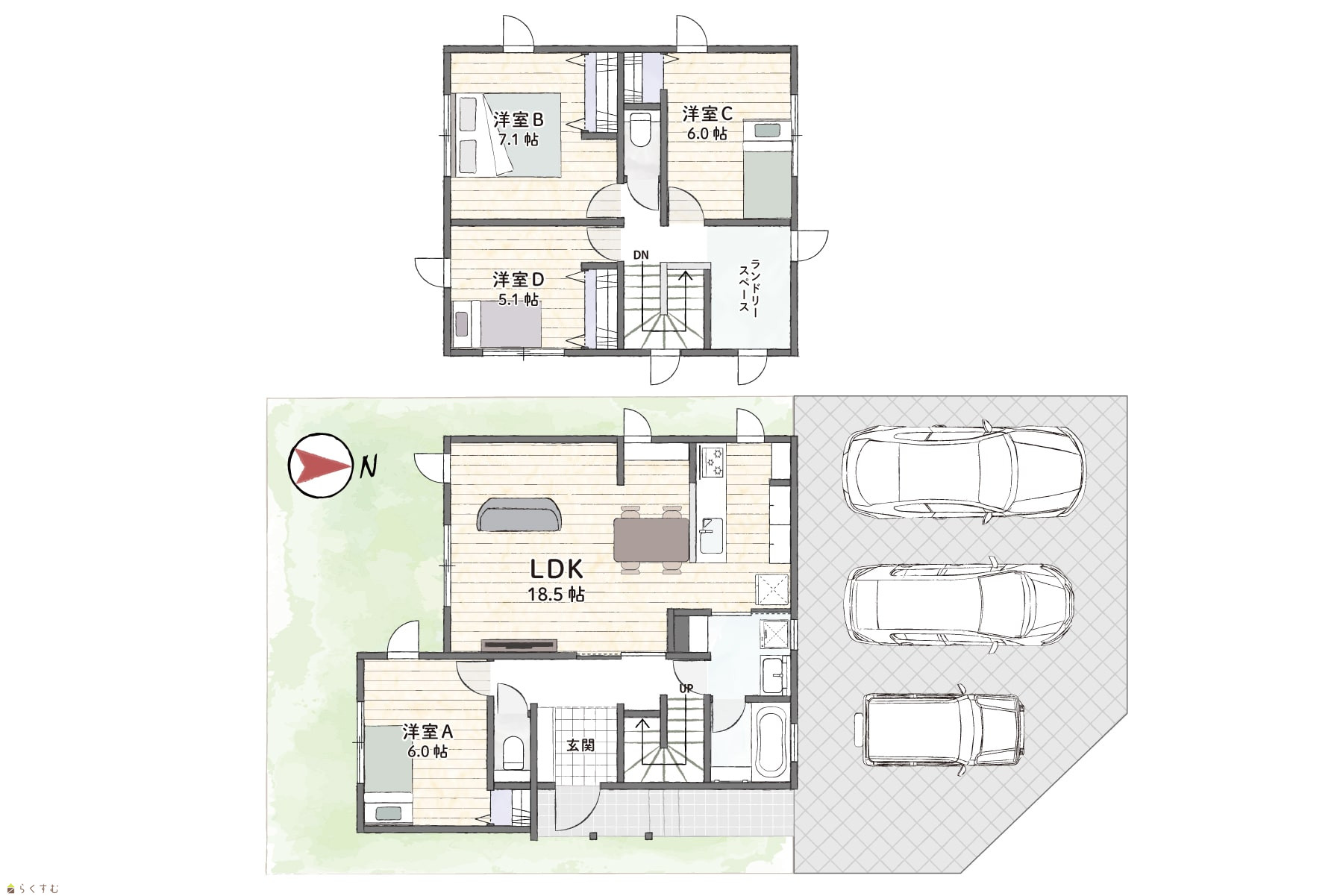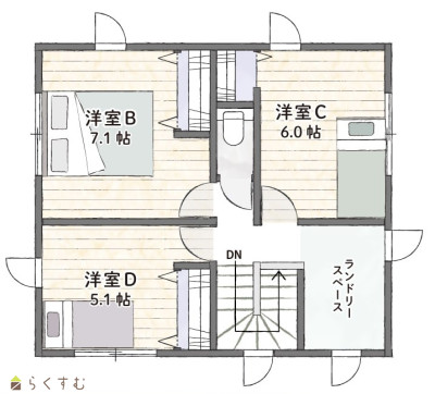 4LDK (洋室:6、7.1、6、5.1) LDK18.5 |