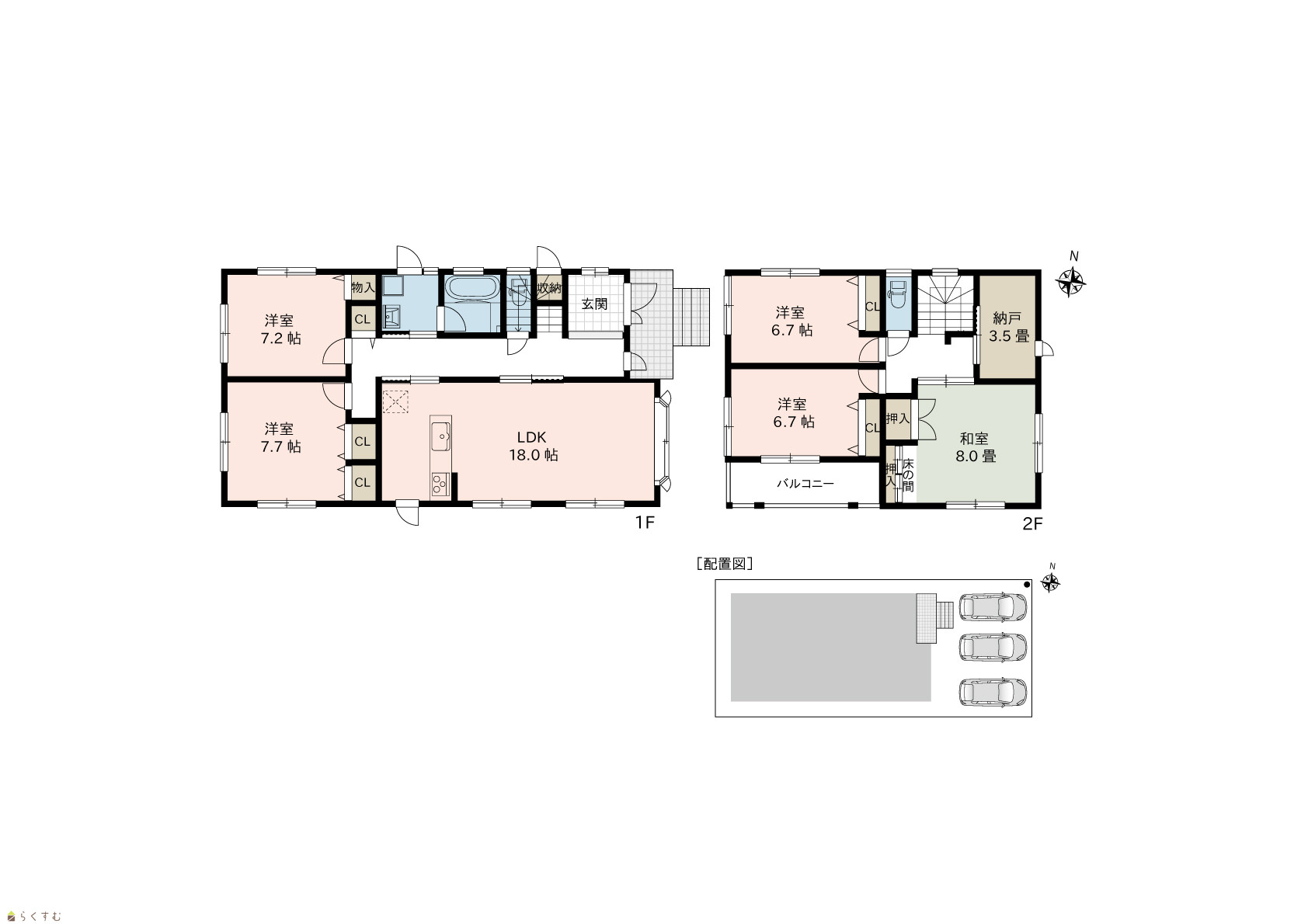 5LDK (和室:8.0畳) (洋室:8.3、6.7、6.7、6.6) LDK18.0 |