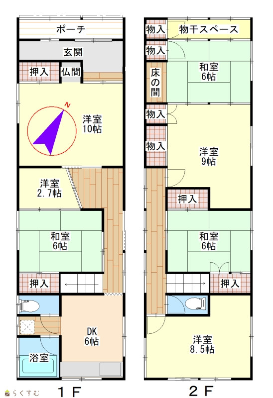 7DK (和室:6畳、6畳、6畳) (洋室:10、2.7、8.5、9) DK6 |