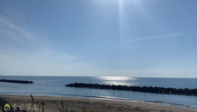 | 国道402号線は日本海を眺めながらドライブを楽しめます。車で10分前後の距離に幾つも海水浴場が有ります。 | |||
