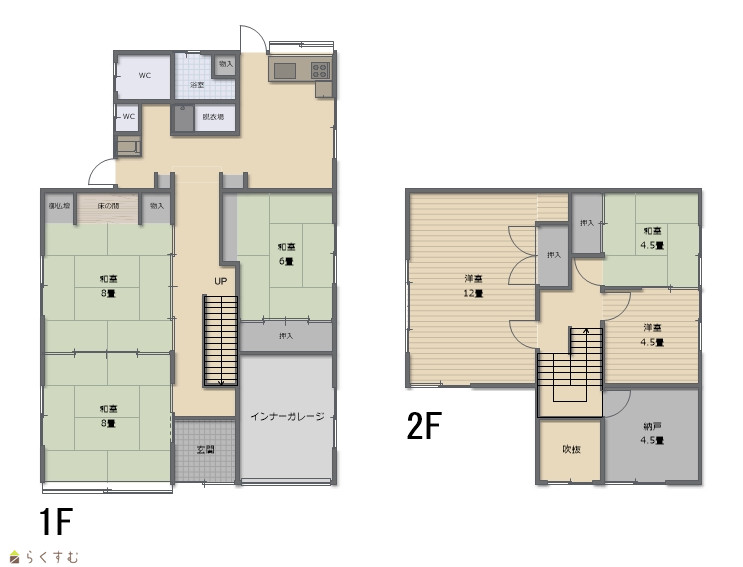 | 間取り | 6DK (和室:8畳、8畳、6畳、4.5畳) (洋室:12、4.5) | ||