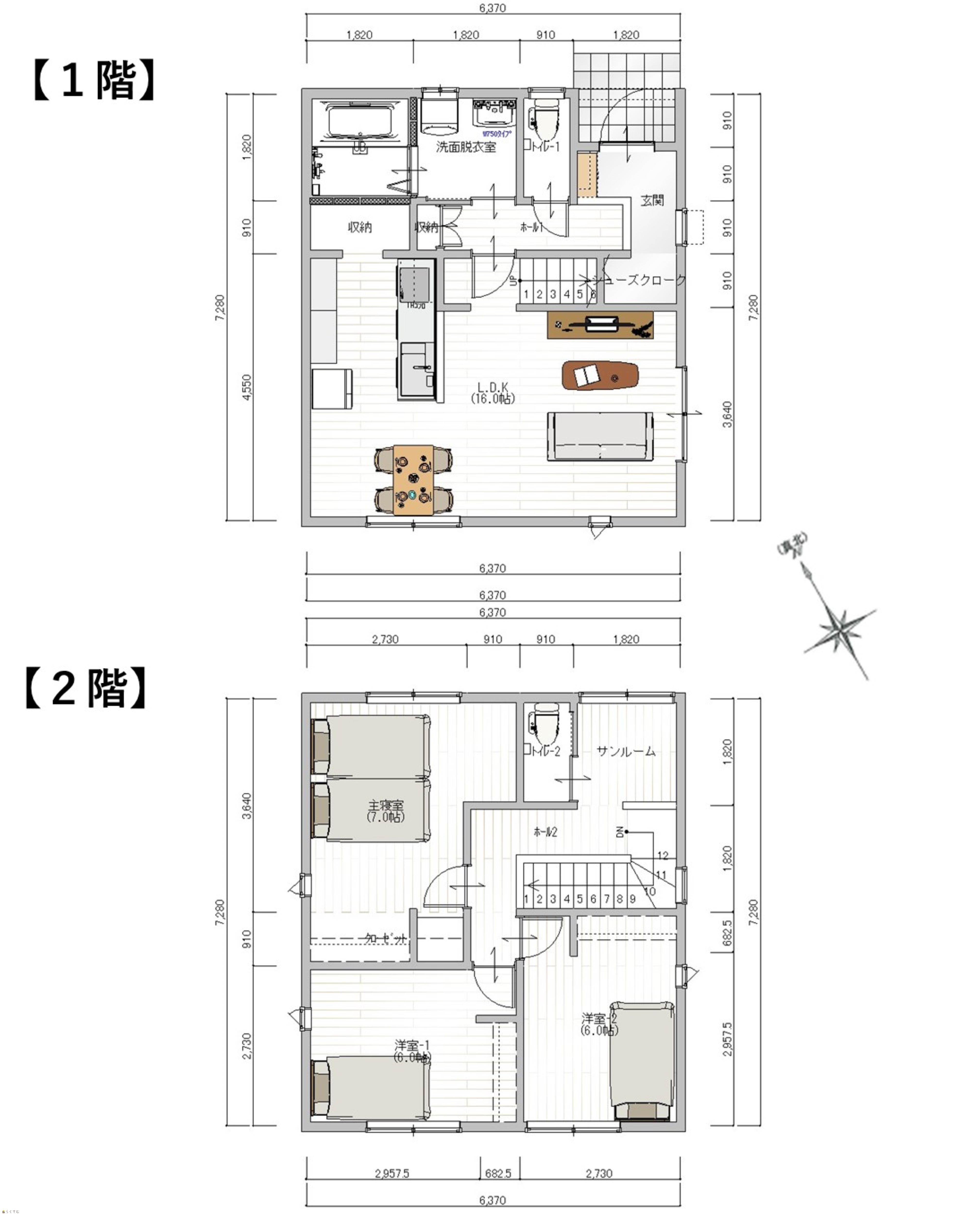 | 建物面積 | 1階 44.71㎡/ 2階 46.37㎡/ 計 91.08㎡ /27.55坪 | ||