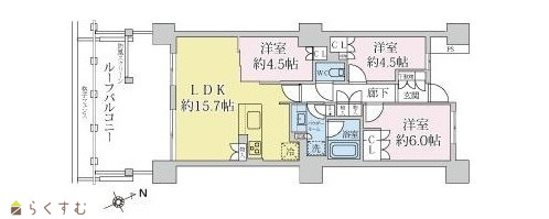 3LDK (洋室:4.5、4.5、6) LDK15.7 |
