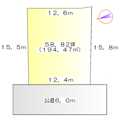 | 形状 | 間口 12.4m × 奥行 15.4m | 道路 | - |