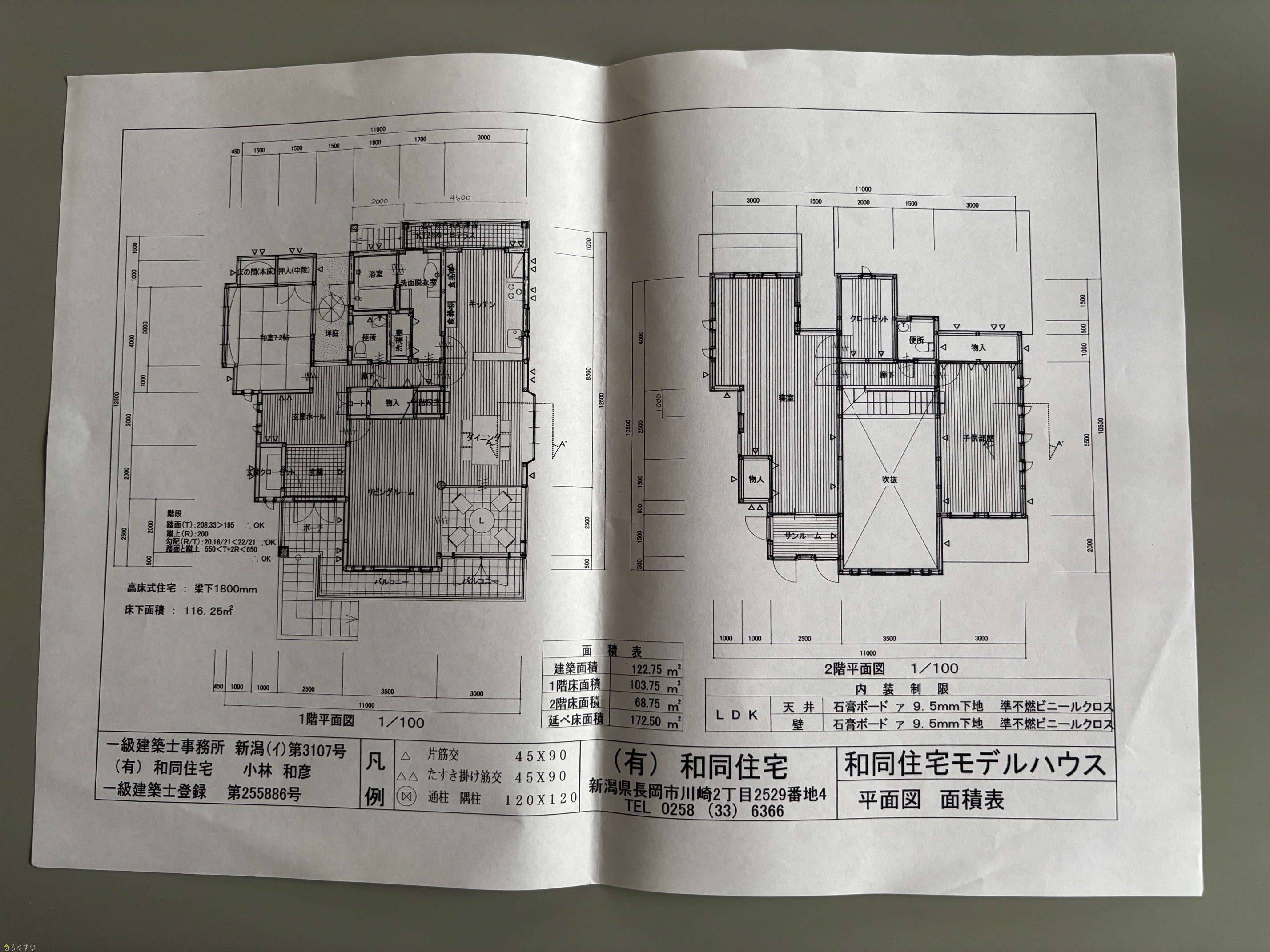 建物面積 1階 110.25㎡/ 2階 103.75㎡/ 3階 68.75㎡/ 計 282.75㎡ /85.53坪
