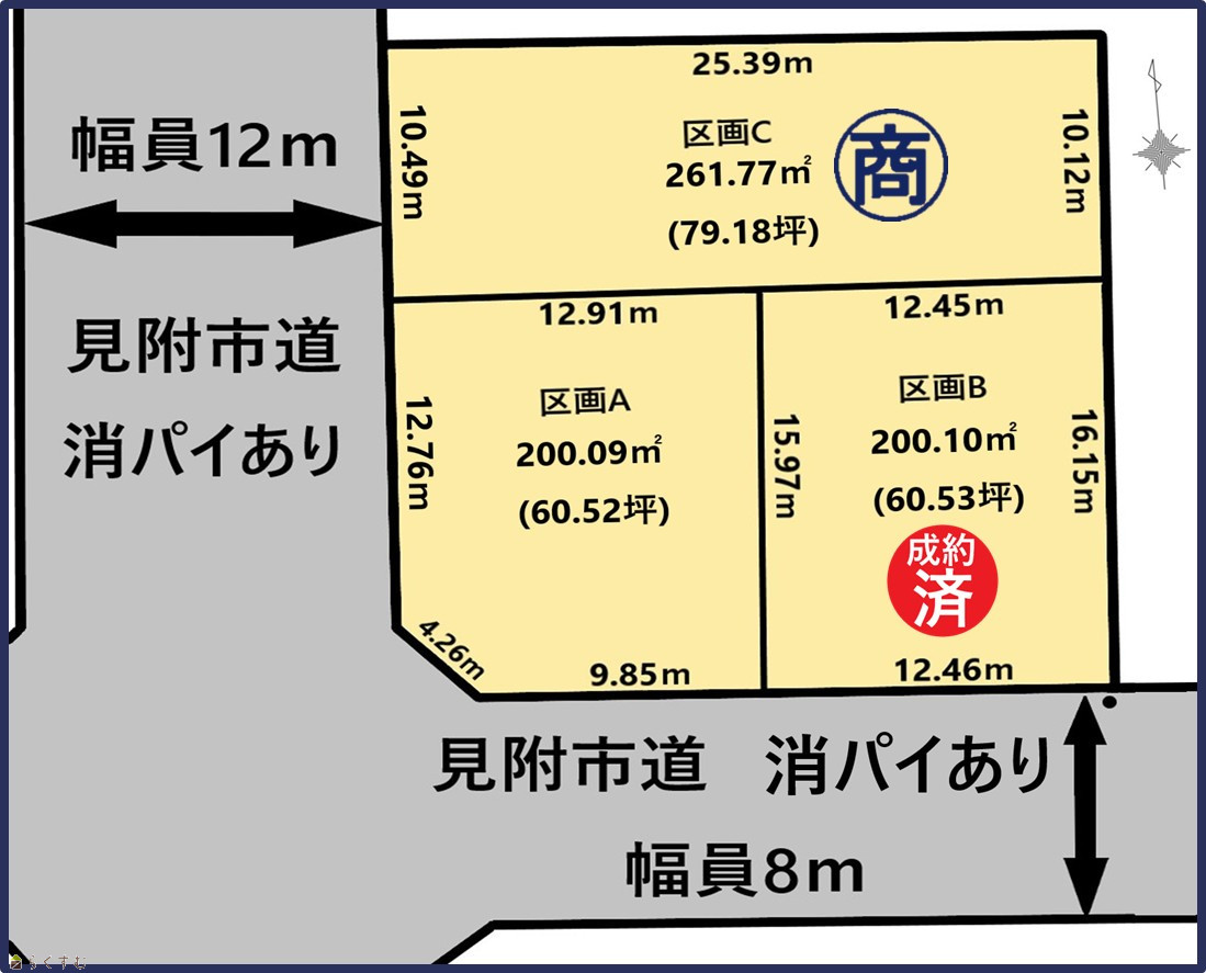 | 設備 | 角地、整形地、前道6m以上、南側道路面す、スーパー近く、最寄り駅近く、閑静な住宅街、所有権、側溝、都市ガス(前面道路)、上水道(前面道路)、下水道(前面道路)、電気、都市ガス(宅地内)、上水道(宅地内)、下水道(宅地内)、前面道路融雪設備あり、住宅向け | ||