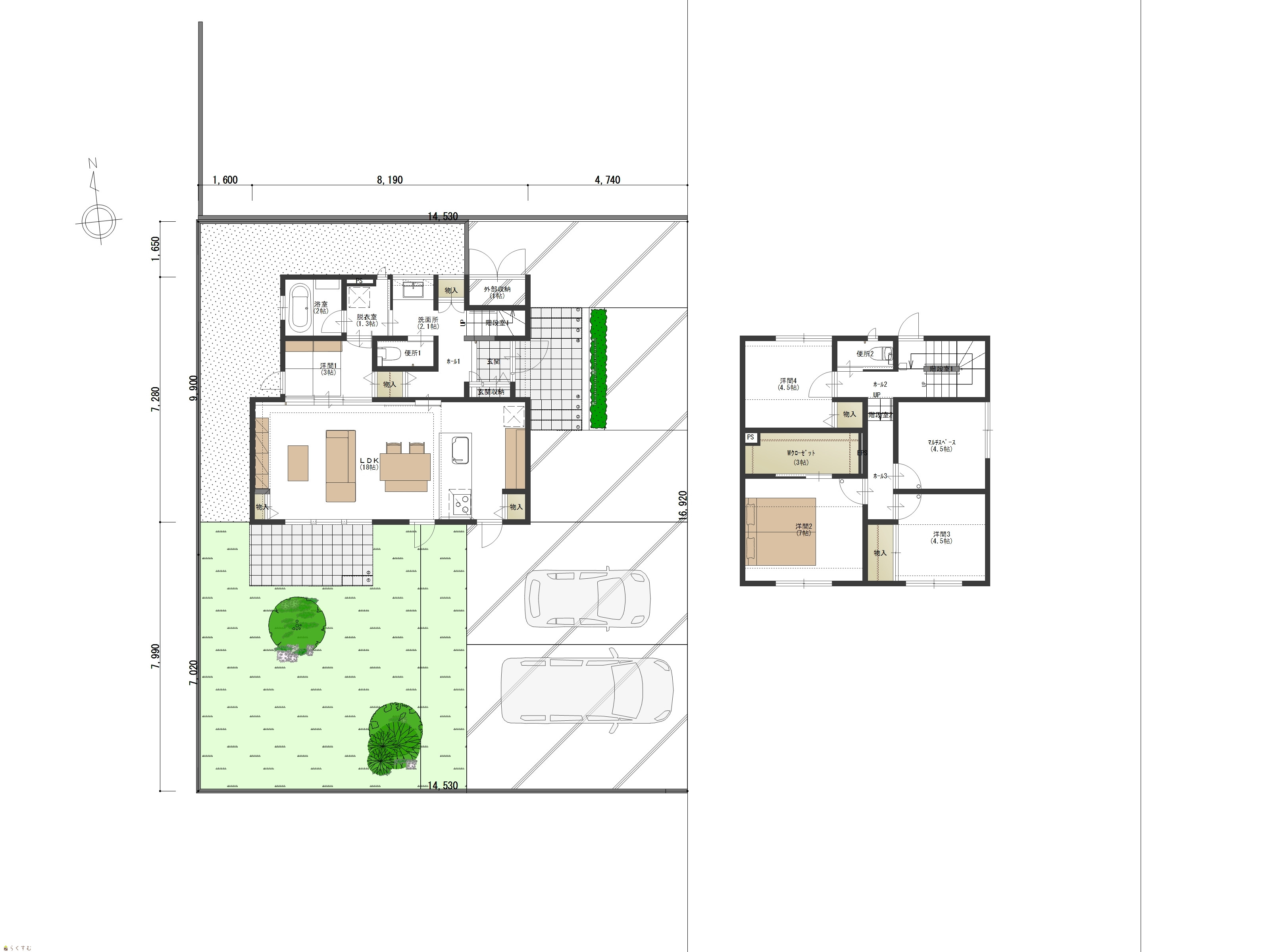 | 建物面積 | 1階 55.48㎡/ 2階 52.99㎡/ 計 108.47㎡ /32.81坪 | ||