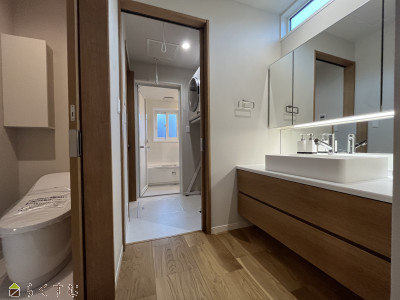 ≪事前の見学予約でQUOカード3,000円分プレゼント!≫◎他区画より広めの74坪区画割り ◎高天井&ハイサッシで開放的な18帖LDK ◎木目天井と間接照明が柔らかな雰囲気を演出 ◎家事らくアイテム『かん太くん』も設置済み! ◎おしゃれなワイドカウンター洗面化粧台