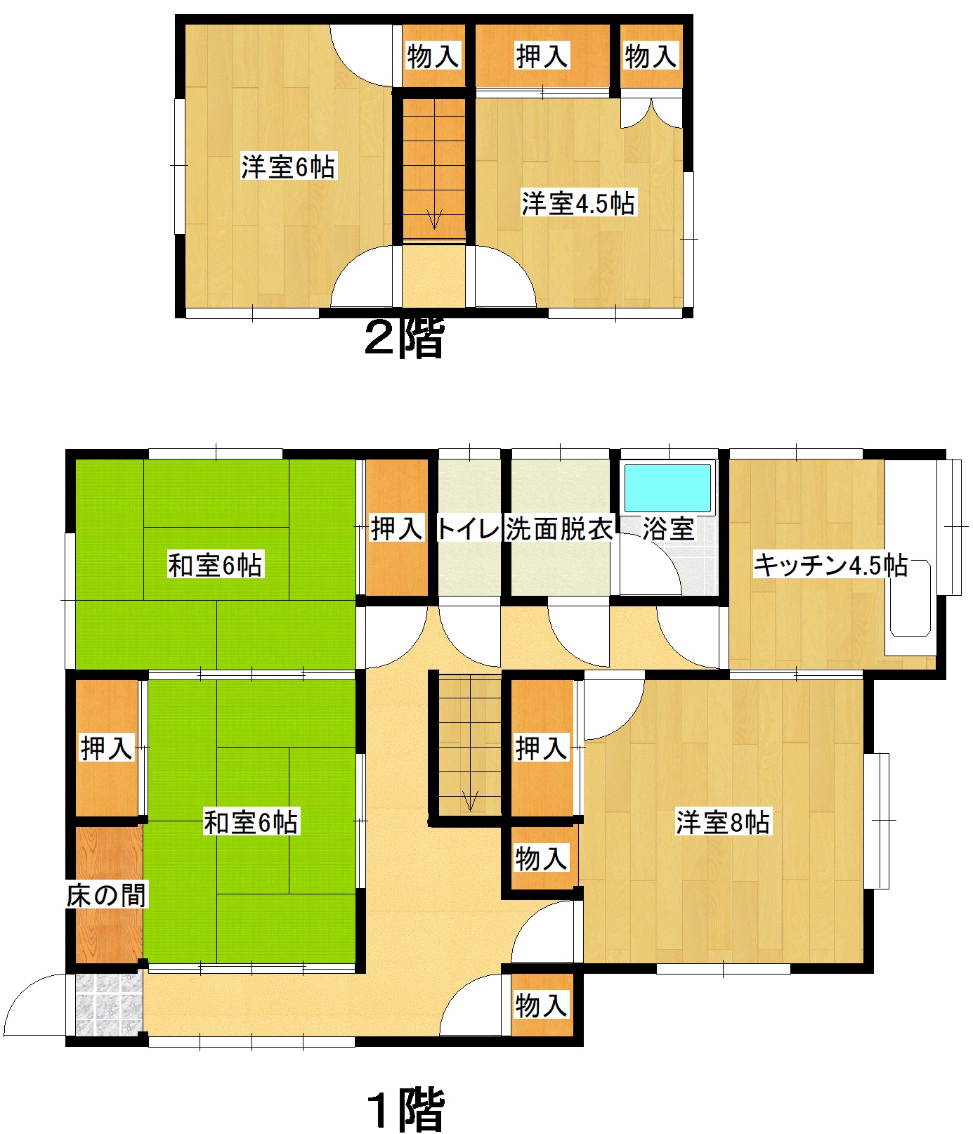 | 間取り | (和室:6畳、6畳) (洋室:8、4.5、6) | ||
