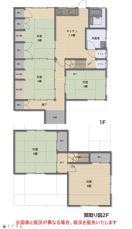 5DK (和室:6畳、6畳、6畳、8畳) (洋室:8) DK7.8 |