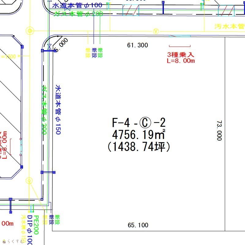 | 形状 | 間口 61m × 奥行 73m | 道路 | 北側 市道 幅員12m・西側 市道 幅員12m |