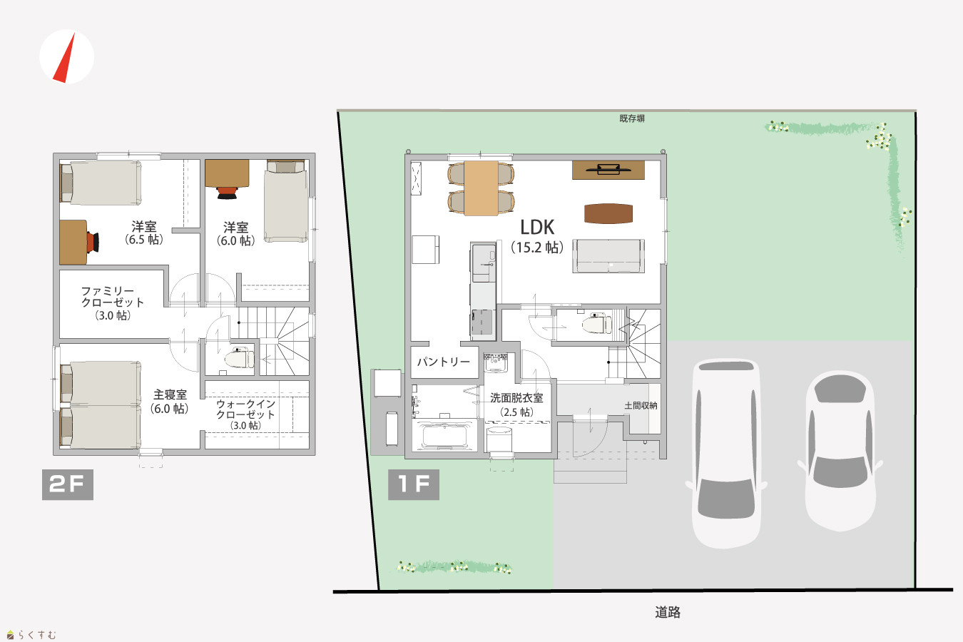 3LDK (洋室:6.5、6、6) LDK15.2 |