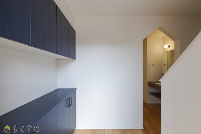 キッチンぐるぐる回遊動線で家事楽間取り!1Fにランドリールーム付きでお洗濯がここで完結!3帖のウォークインクロークで家族みんなの収納バッチリ!