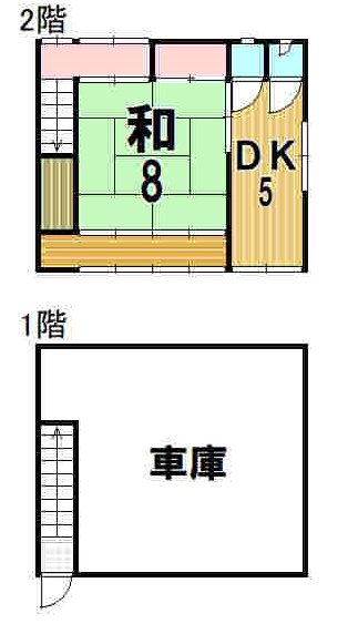 1DK (和室:8畳) DK5 1階は車庫 |