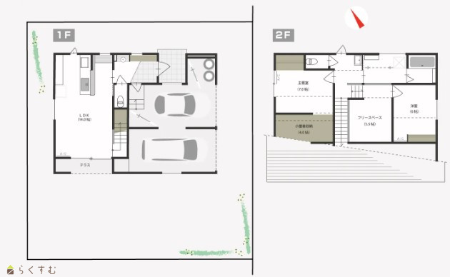 インナーガレージ2台分+自転車置きスペースあり