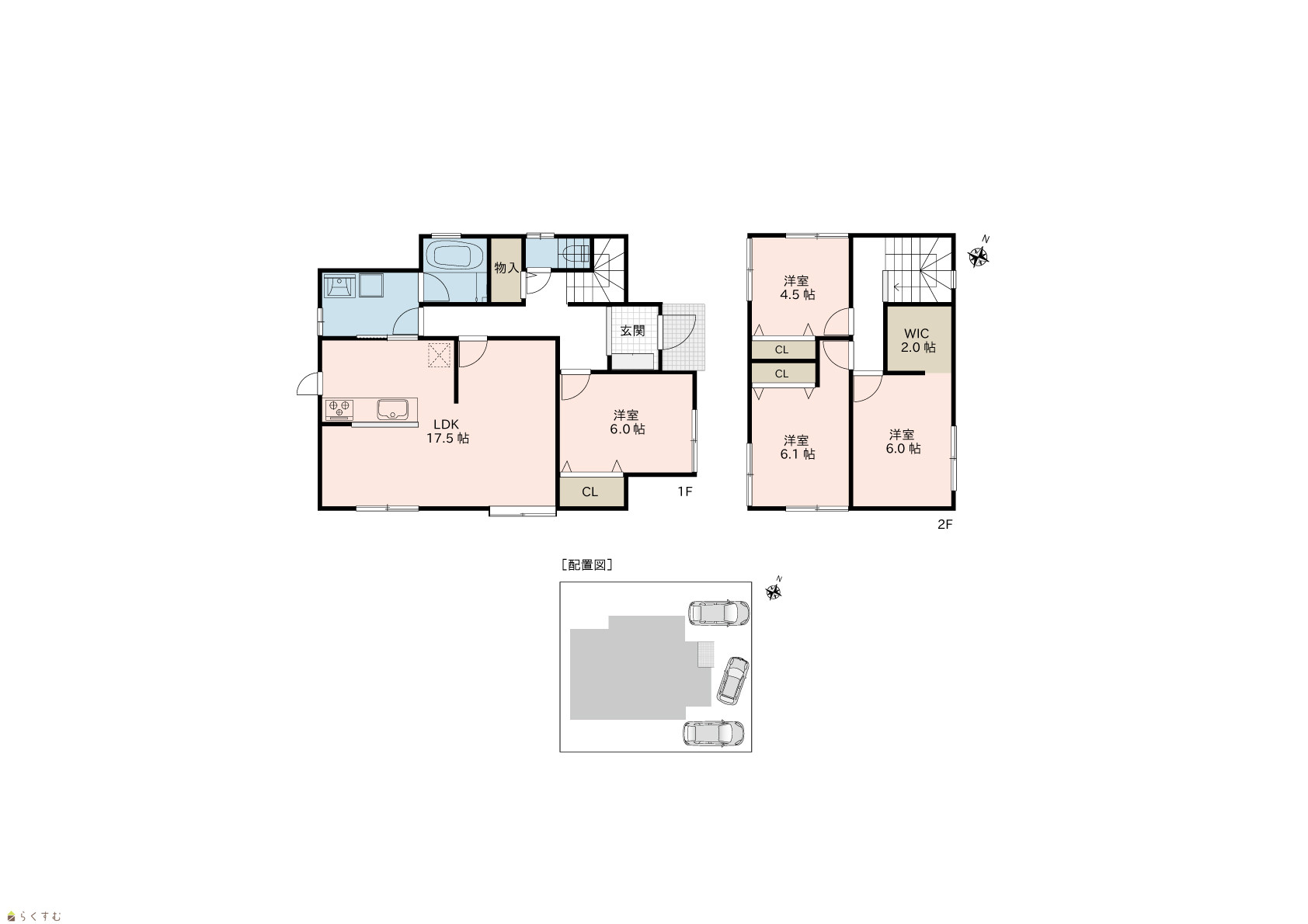 4LDK (洋室:6.1、6.0、6.0、4.5) LDK17.5 |