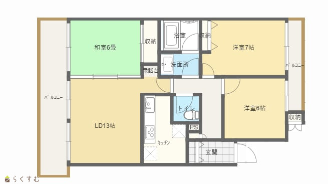 3LDK (和室:6畳) (洋室:6、7) LDK13 |