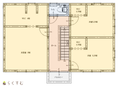 3LDK (洋室:8、5.25、5.25) リビング8.35帖 ダイニングキッチン8帖 物干室2.25帖 玄関収納1.67帖 WIC4帖 |