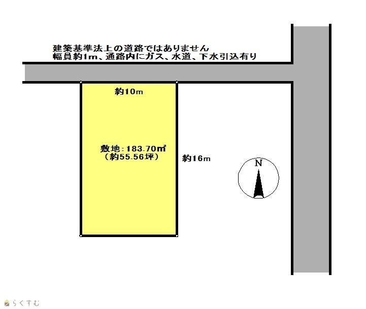 | 形状 | 間口 10m × 奥行 16m | 道路 | 北側道路、幅員約1m |