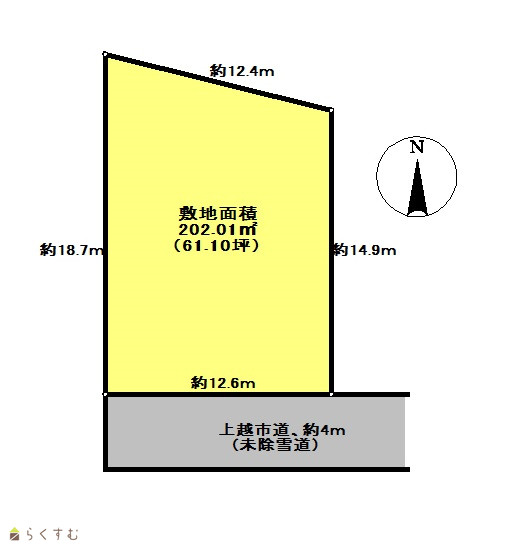 | 形状 | 間口 12.6m × 奥行 14.9m | 道路 | 南側、4m |